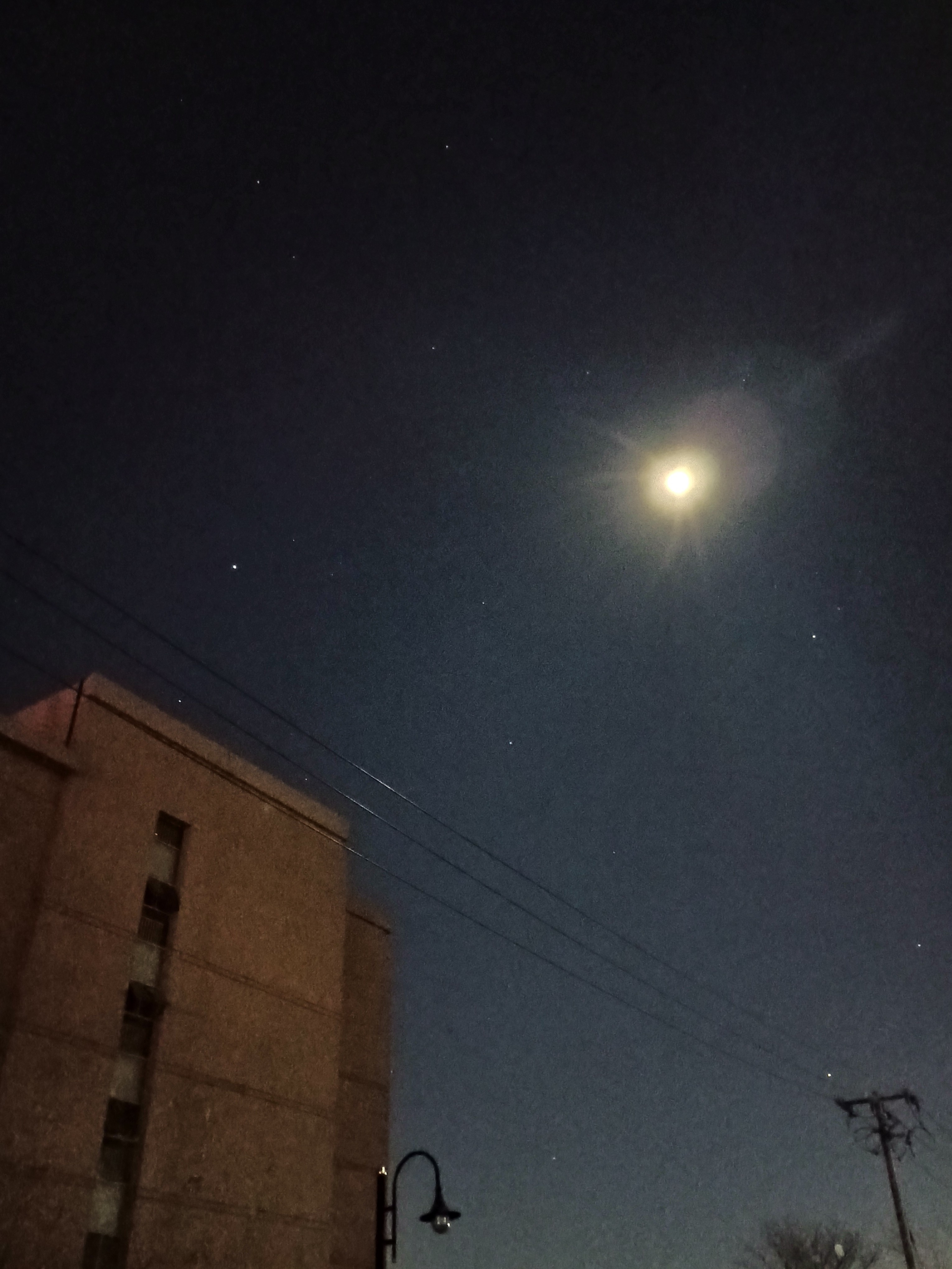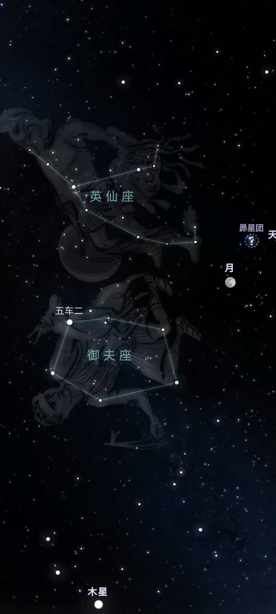 在眼睛适应黑暗后,借助望远镜,即使有满月干扰,但属于冬季北半球主场的星座依然尽收眼底,相信在新月时能看见更璀璨的星空,更加震撼。